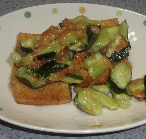 厚揚げのたたき梅きゅうりのっけ